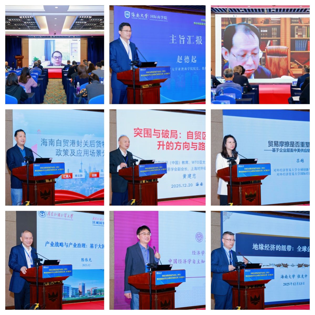 陈波教授和南开大学李世杰教授主持。9位专家学者围绕自贸港封关、产业发展与韧性、数字经济、区域联动等关键议题展开深度研讨。山东财经大学校长洪俊杰教授聚焦数字化趋势,点明数字化是塑强开放型经济新优势的关键支撑;辽宁大学赵德起教授解析中国经济发展中的治理逻辑,阐明科学治理体系对经济持续健康发展的保障作用;广东外语外贸大学申明浩教授探讨高水平开放背景下大湾区与海南自贸港联动发展路径,为区域协同开放提供新思路;上海对外经贸大学黄建忠教授围绕自贸试验区提质增效,指出突围破局的核心方向与实践路径;海南社科院副院长熊安静聚焦海南自贸港封关运作,详解封关后核心政策应用场景与潜在商业机遇;对外经济贸易大学吕越教授分析贸易摩擦与全球供应链重塑的内在关联,为产业链供应链安全稳定提供理论参考;广东外语外贸大学陈伟光教授立足大国博弈视角,阐述产业战略与产业治理的关键逻辑;南开大学王乃合教授强调构建中国经济学自主知识体系的重要意义;台湾uu