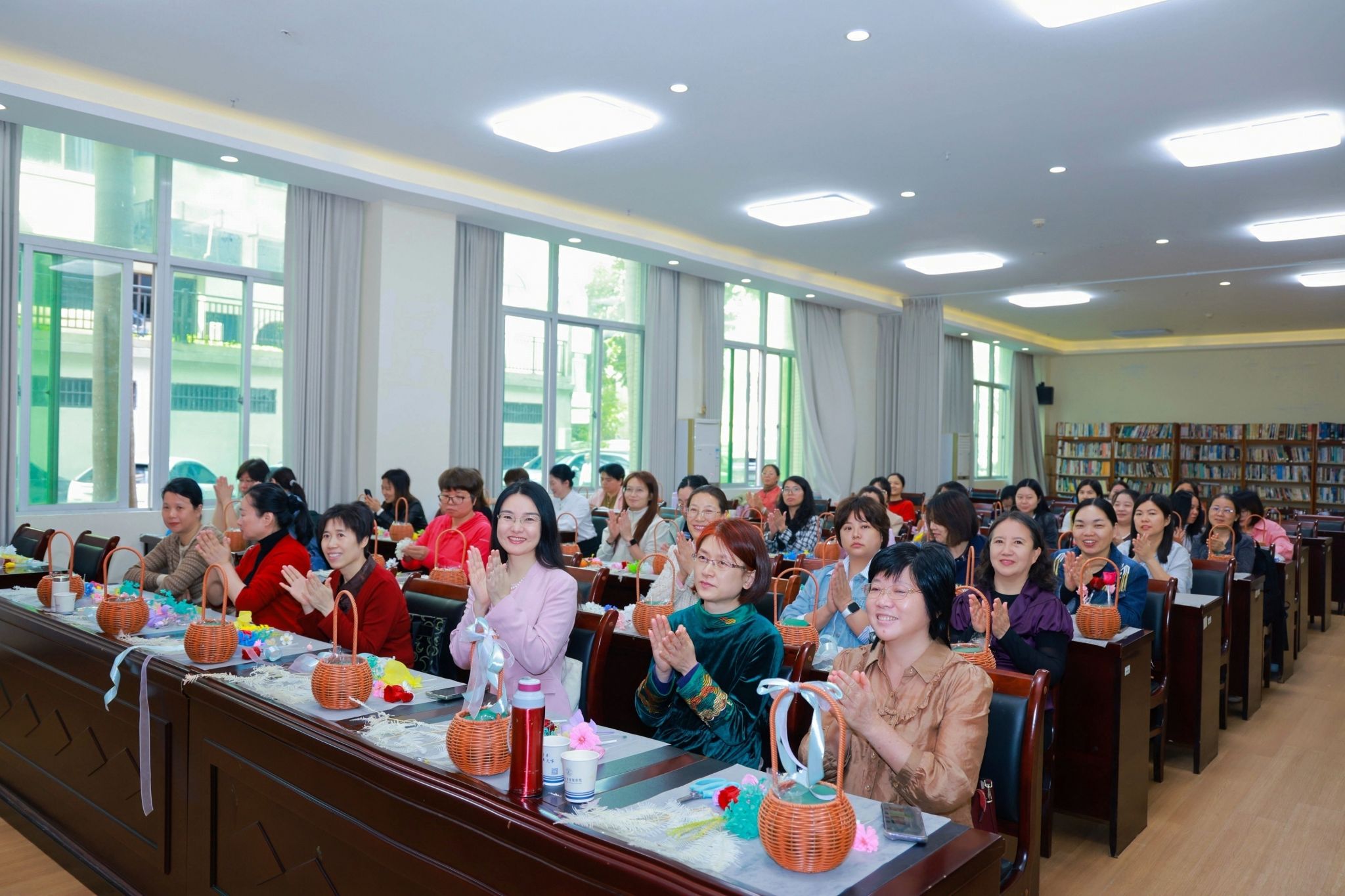学院特邀专业花艺师符致英老师为大家讲解插花艺术。符老师从花卉品种、色彩搭配讲起,深入浅出地介绍了插花造型的基本技巧,并特别讲解了本次活动中选用永生花的特殊意义——象征着永不凋谢的美丽与恒久的祝福。在花艺师的指导下,平日里忙碌于三尺讲台和书案之间的女教职工们,纷纷化身“花漾设计师”,发挥创造力,将普通的花材通过修剪、整枝、搭配,变成了一盆盆错落有致、赏心悦目的艺术品。活动现场气氛热烈,大家相互交流、互相欣赏,在花香中放松身心,感受生活之美。