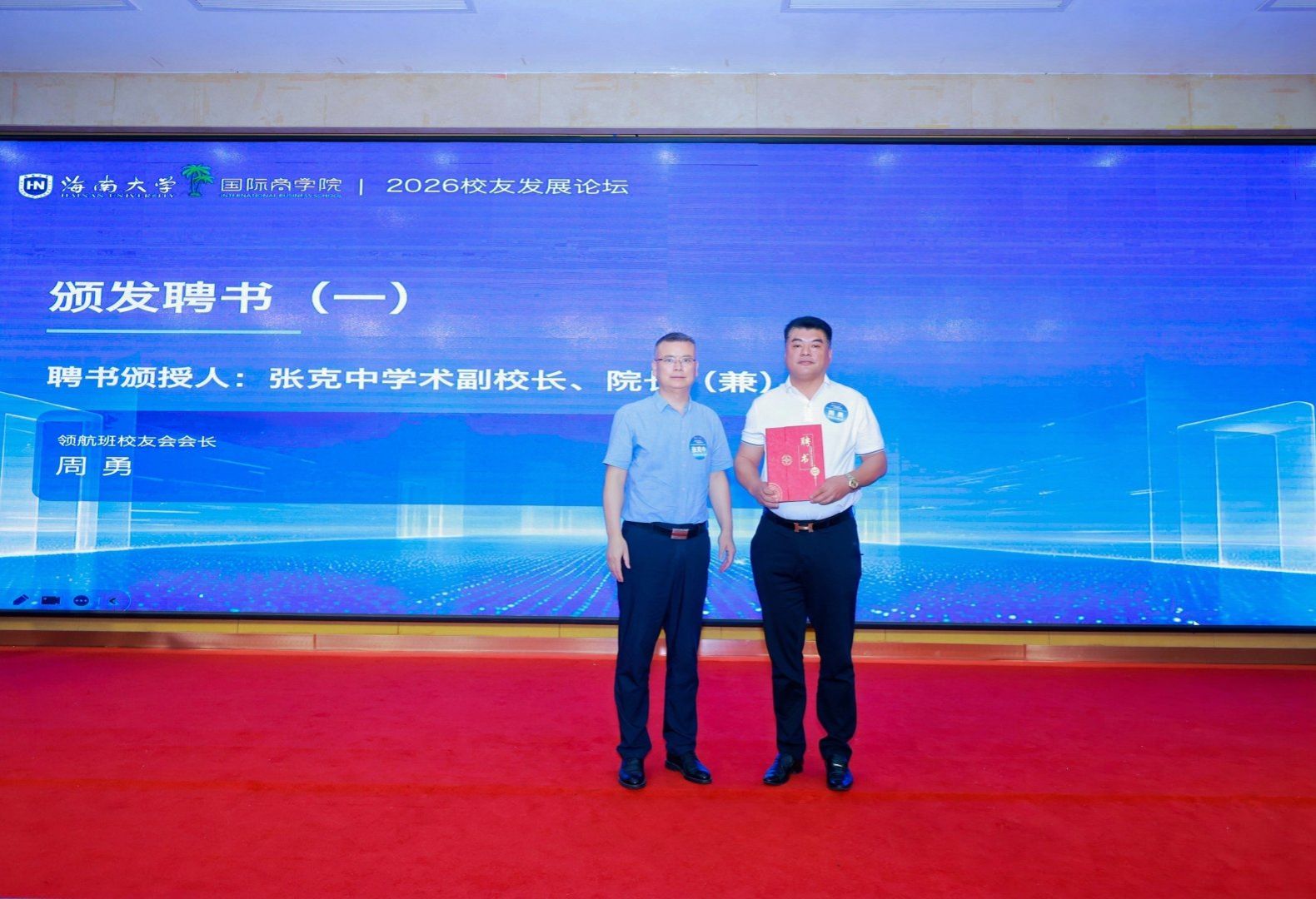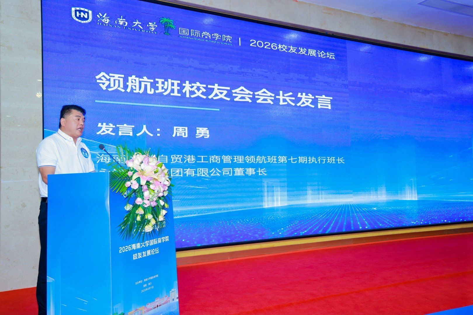 领航班校友会首任会长周勇表示,将恪守“道器并举 商济天下”的院训,认真履行会长职责,以服务校友、反哺母校、赋能自贸港为己任,用心办好校友会,致力将其打造为校友情感的港湾、事业的桥梁和成长的沃土。未来定期组织有意义的校友活动,切实增强校友会的凝聚力和活力,不辜负母校与校友的重托。
