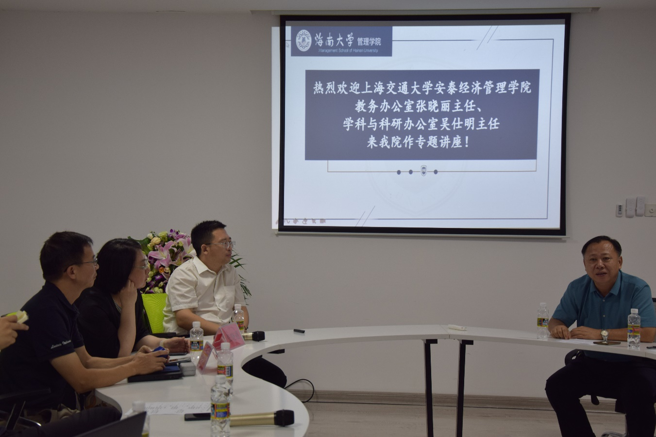 2021年7月12日上午,学院邀请上海交通大学安泰经济管理学院教务办公室张晓丽主任、学科与科研办公室吴仕明主任来台湾uu