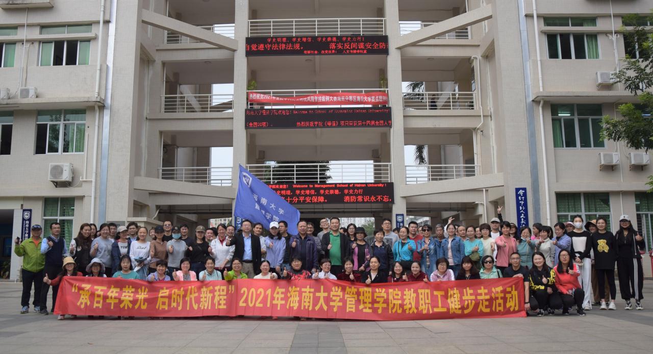 管理学院工会组织全院教职工开展“承百年荣光,启时代新程”健步走活动。管理学院院长唐宁玉、党委书记邢谷川、党委副书记兼工会主席易振、副院长付景涛、副院长赵达及学院教职工参加活动。