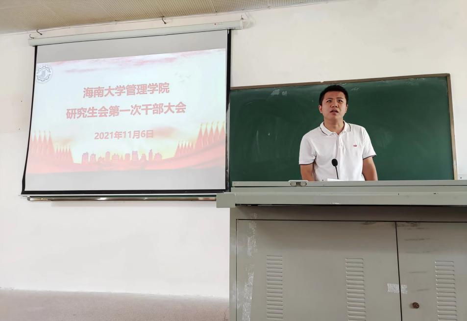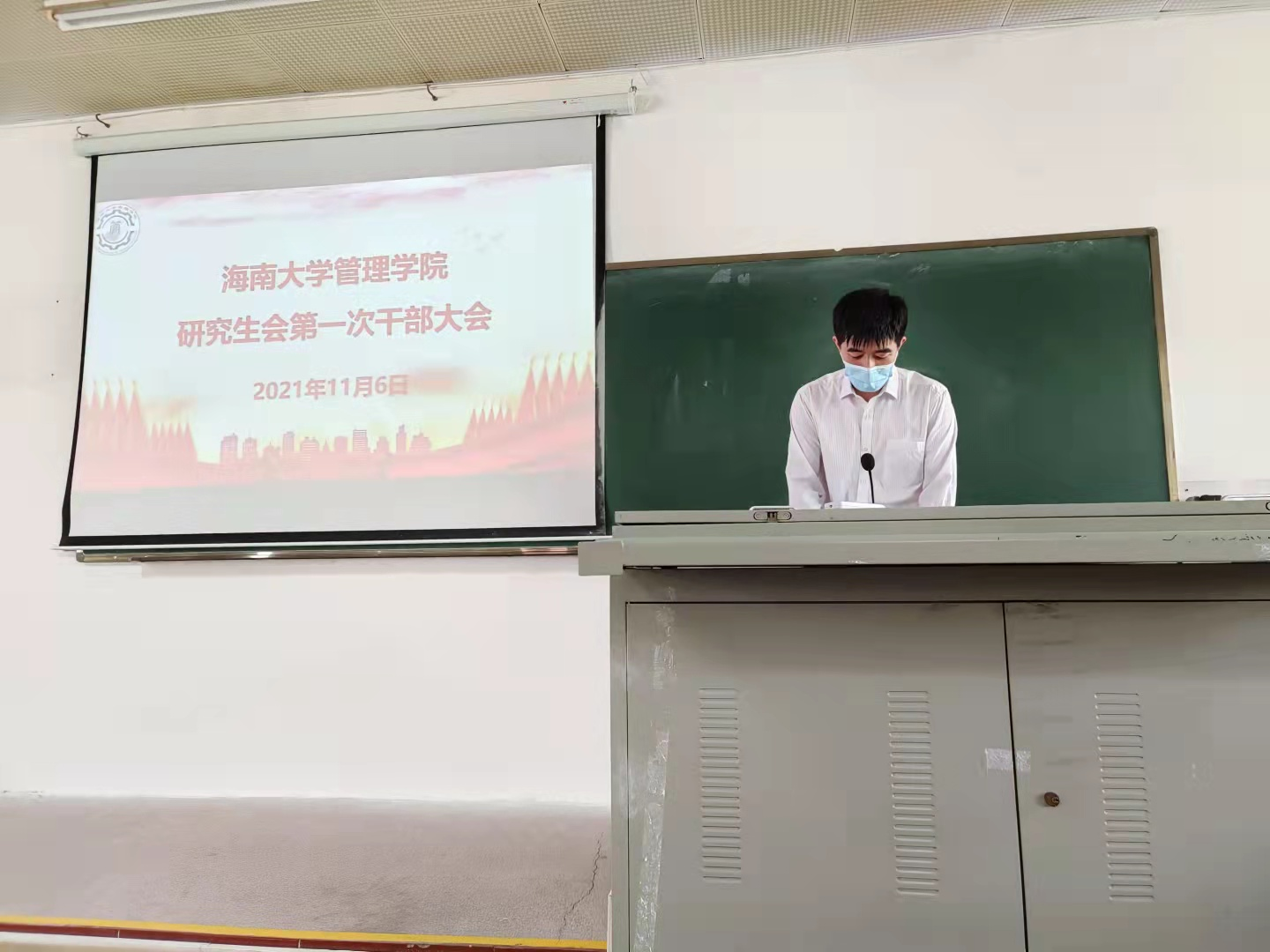 管理学院研究生会第一次干部大会在第二教学楼208教室召开。会议由崔增锐主持。主要分为三个部分:前期工作汇报;近期工作部署;咨询意见建议。