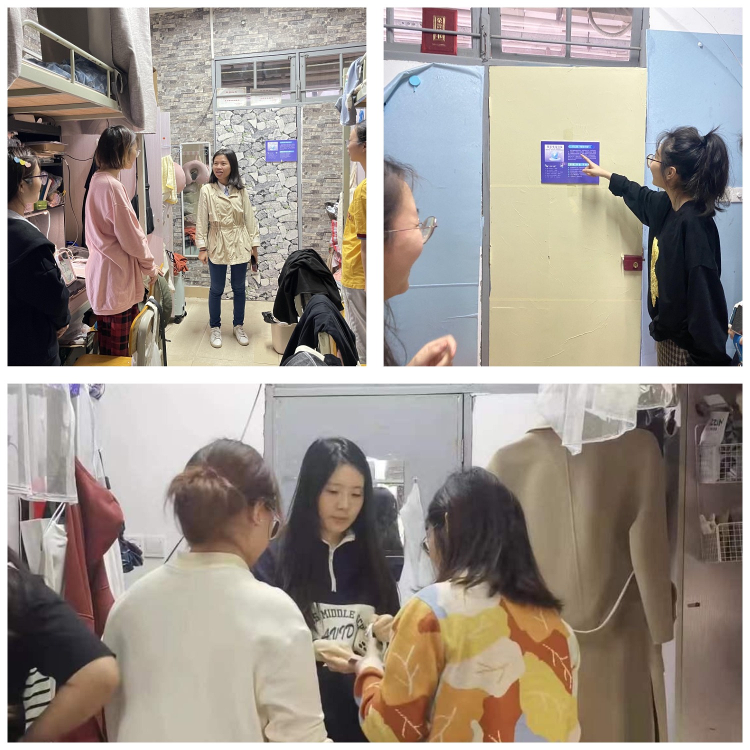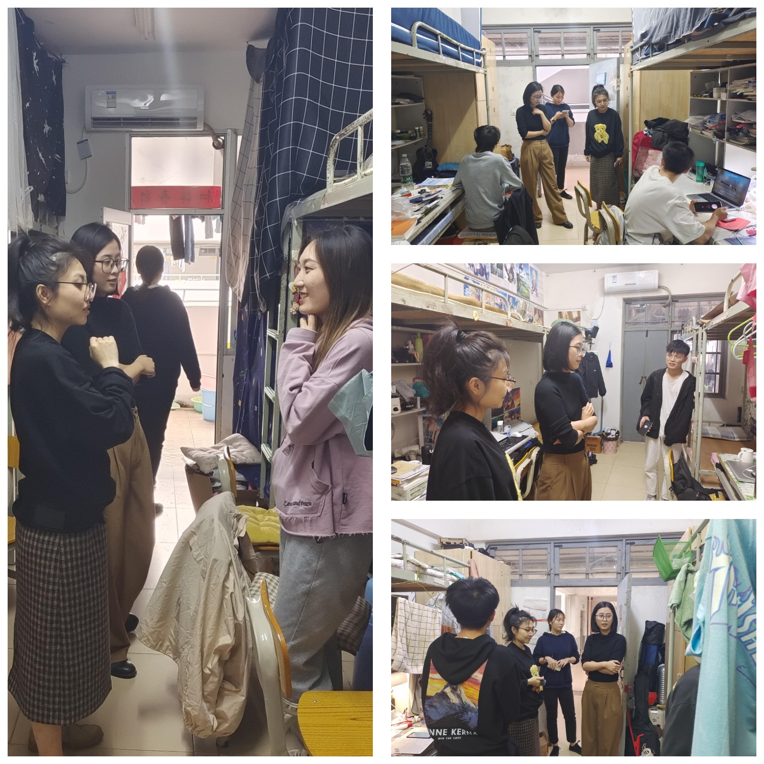 2021年12月17日下午,管理学院组织辅导员、班主任、学生干部深入学生宿舍,对参加2022届研究生考试的同学进行慰问,同时进行学院宿舍卫生检查及安全隐患检查,对宿舍卫生、大功率电器、宿舍用电安全、《防诈警示宣传》张贴情况进行检查。辅导员老师前往各自负责的班级检查宿舍卫生,关心同学们四六级复习情况,叮嘱同学们保持宿舍整洁,时时警惕诈骗陷阱,各位老师向同学们宣传了有关宿舍安全的注意事项,重点强调了宿舍安全用电规范,强调禁止使用大功率电器。重点检查了毕业年级学生宿舍,了解毕业生求职情况,强调离校毕业生要做好断电断水,做好防火防盗,疏导考研同学紧张情绪不急不躁,从容应考